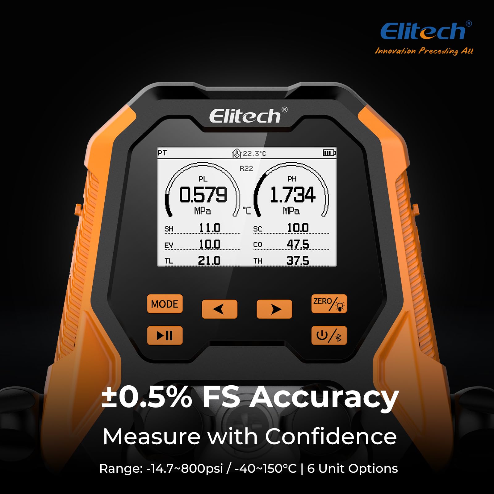 - ăBluetooth Connectivity & App Analysisă Syncs with the Elitech App to view test reports, trend graphs, and historical data, allowing mobile access and remote management for increased jobsite efficiency.